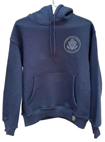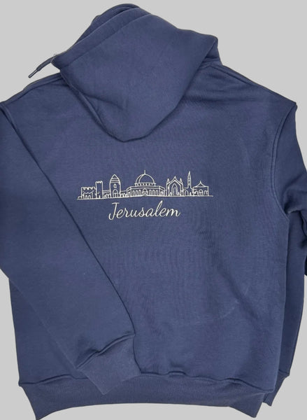 100% Soft Cotton Blend / White Embroidery Embassy Seal & Jerusalem Skyline